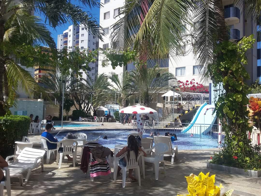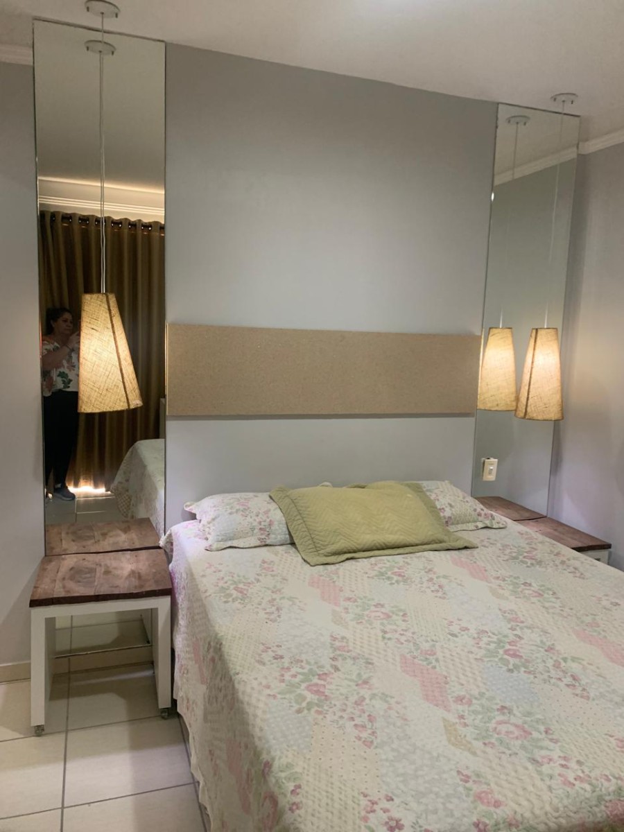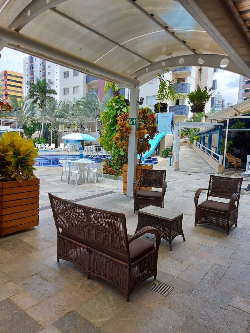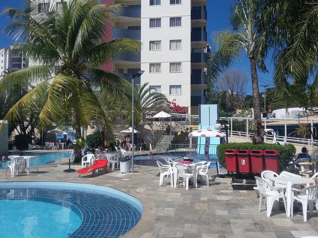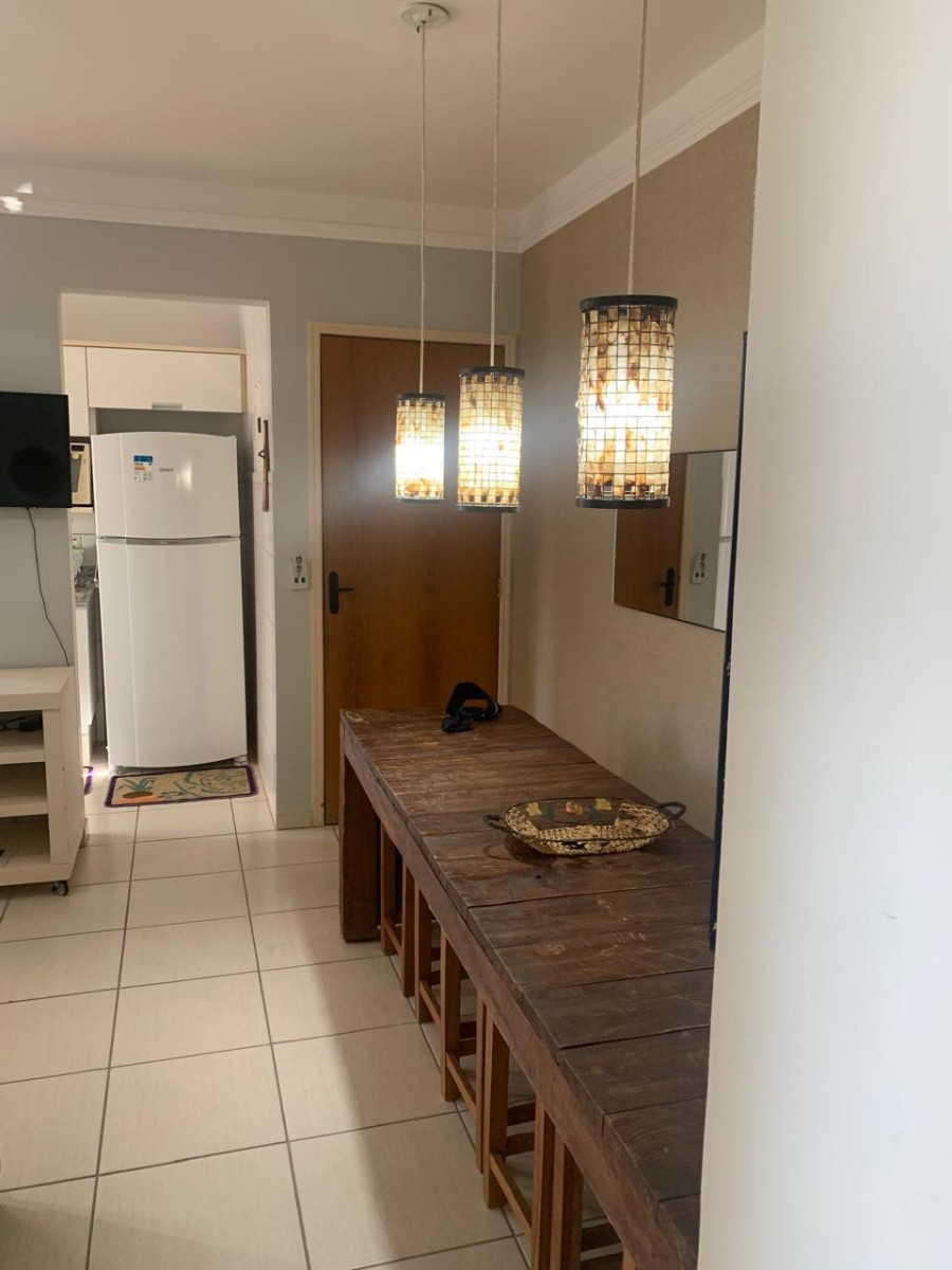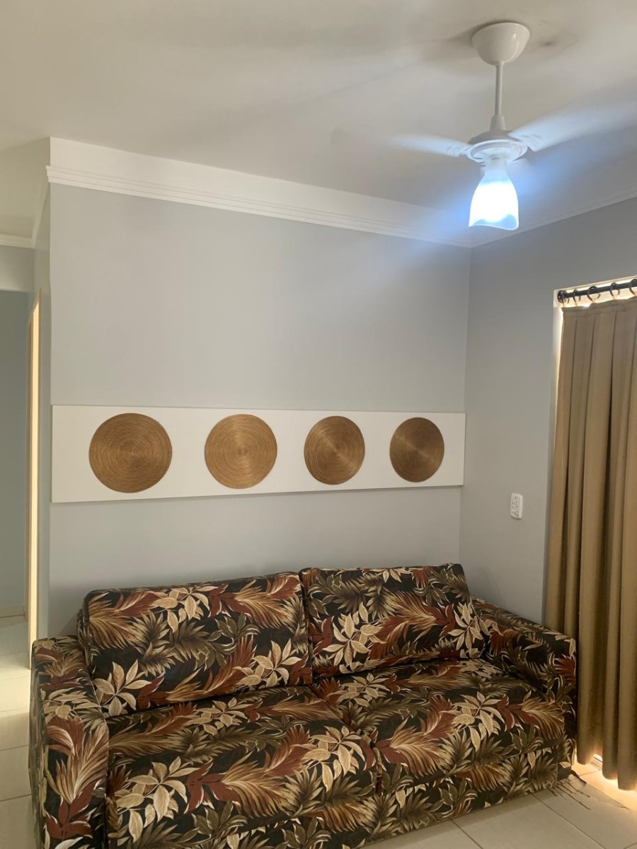 Apartamento mobiliado com suíte e quartos adicionais, ideal para até 7 pessoas, equipado com ar condicionado, cozinha completa e sacada com churrasqueira, além de uma ampla área de lazer para toda a família.
