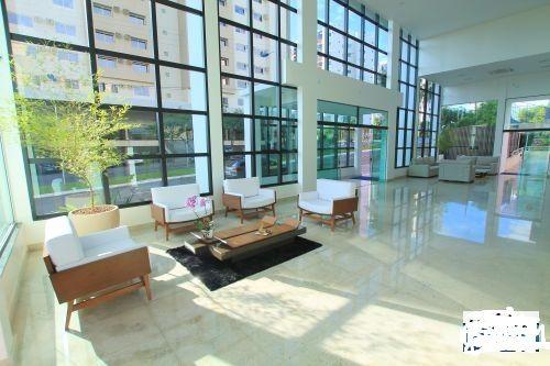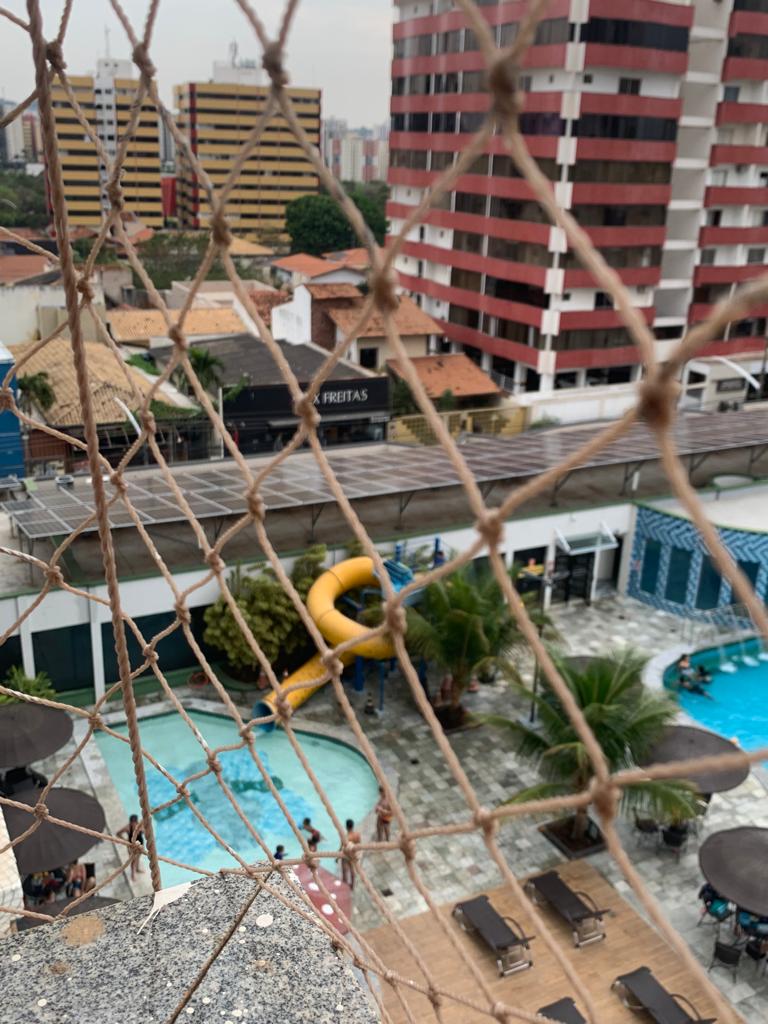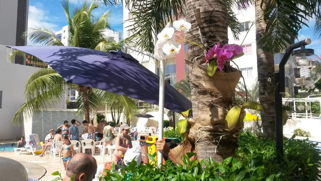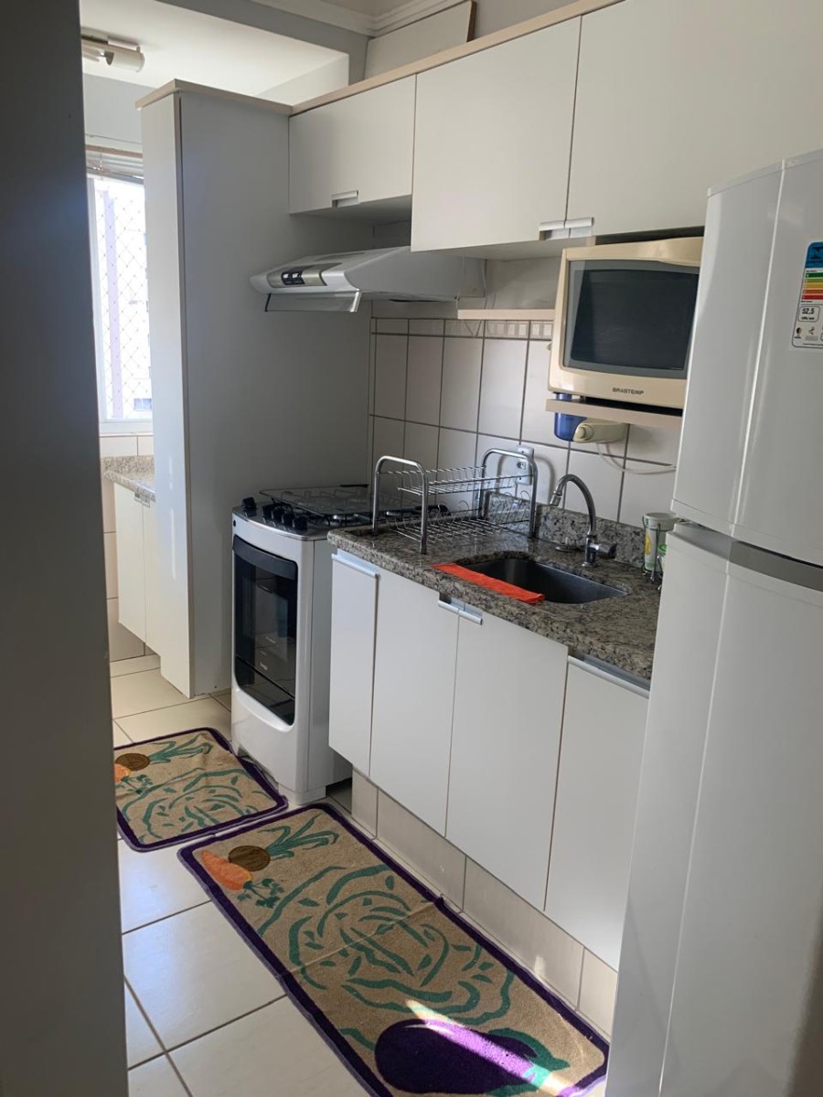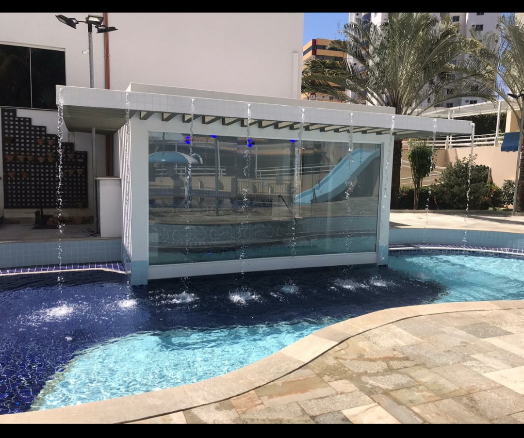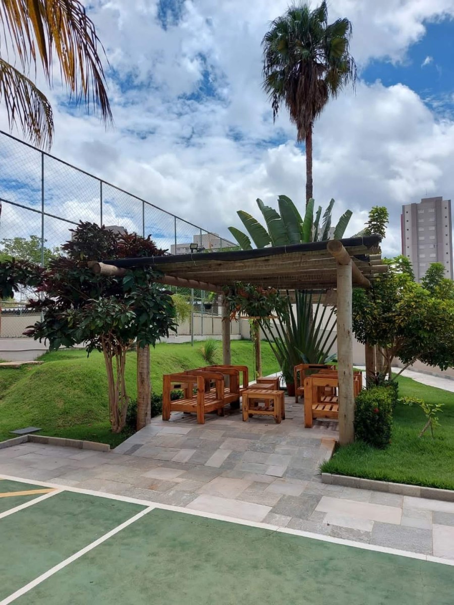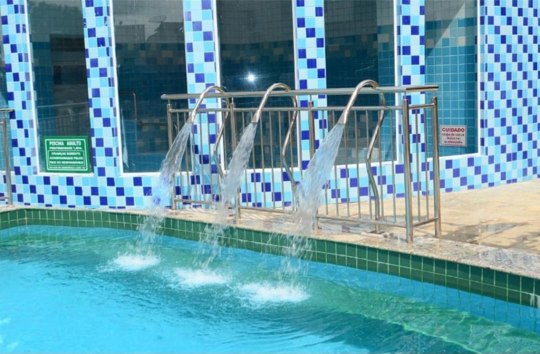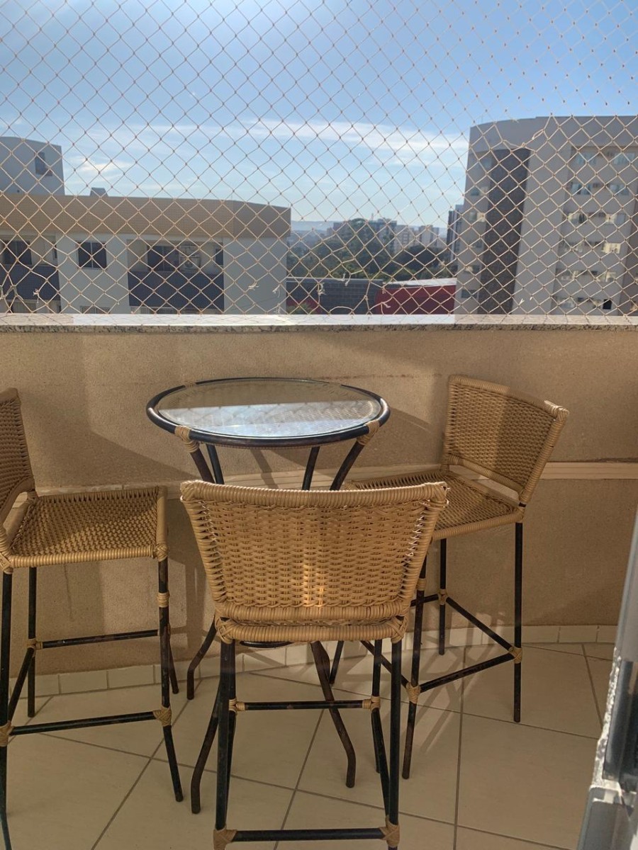 Apartamento mobiliado com suíte e quartos adicionais, ideal para até 7 pessoas, equipado com ar condicionado, cozinha completa e sacada com churrasqueira, além de uma ampla área de lazer para toda a família.